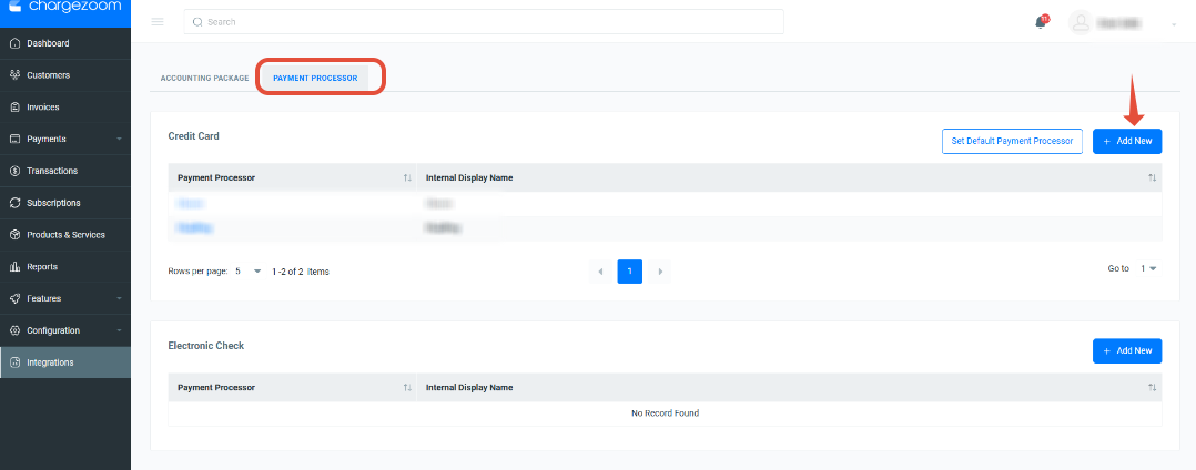 - In the Chargezoom dashboard, find and click the "Integrations" drop-down menu.