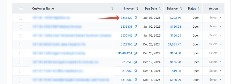- Select a specific invoice number.